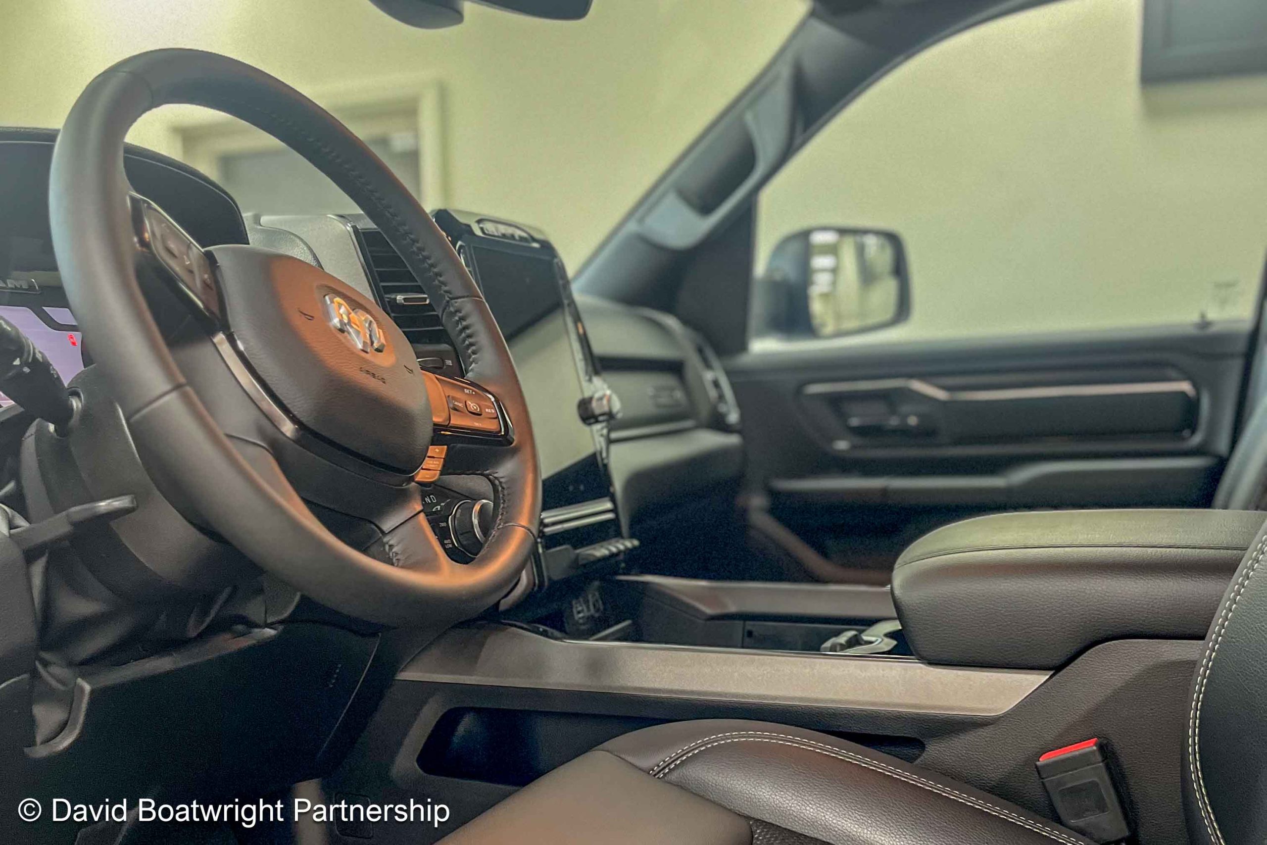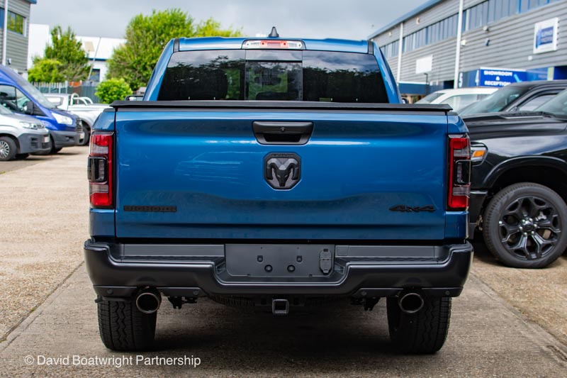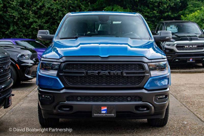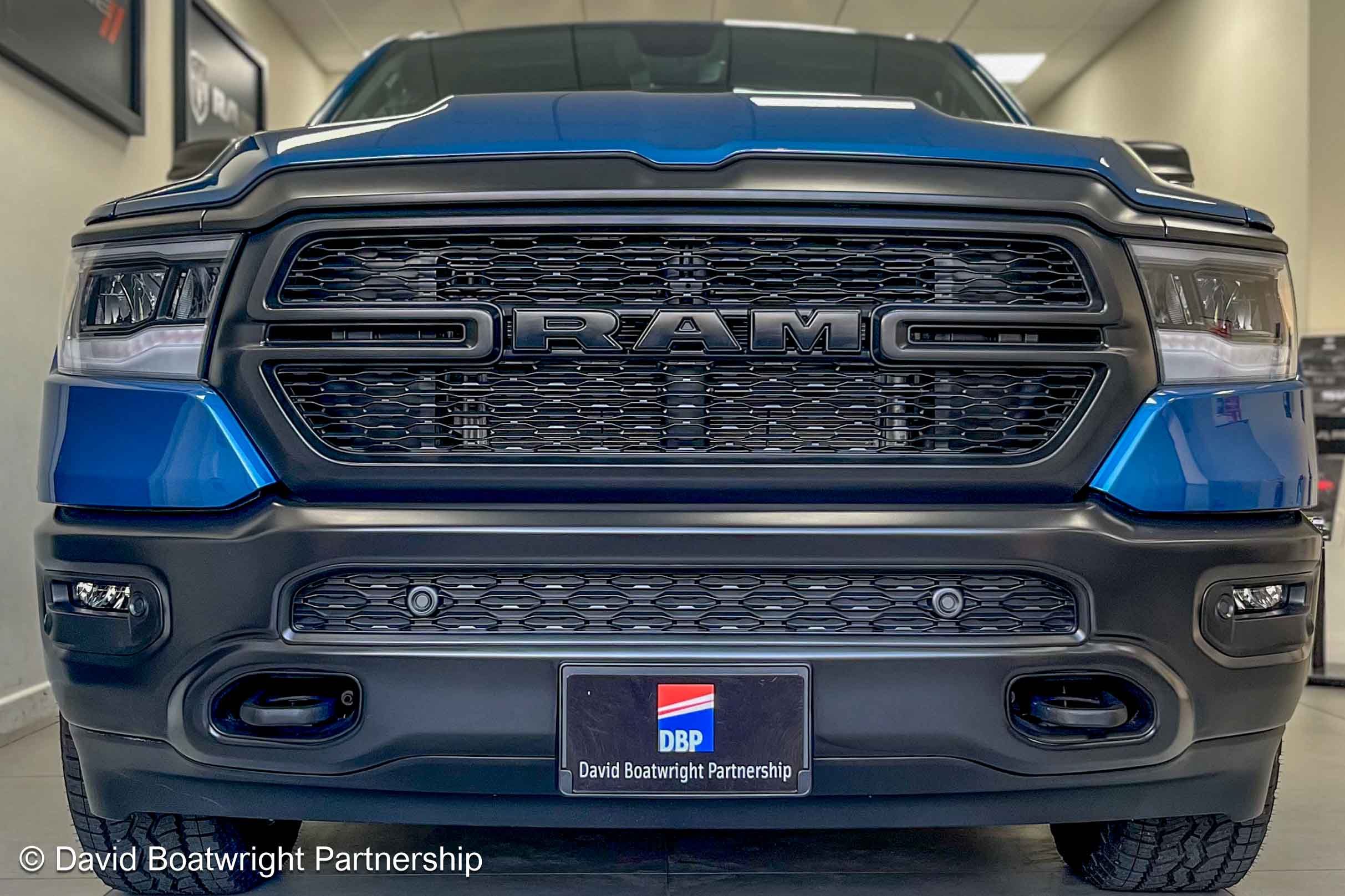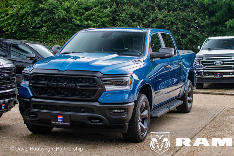 Model Year 2024 Ram 1500 Bighorn "Built To Serve" Edition with the 5.7L V8 Hemi engine and 8 speed automatic transmission supplied new by The David Boatwright Partnership. The 2024 model also benefits from the large 12" touchscreen media display and this exclusive Night Edge Blue colour.