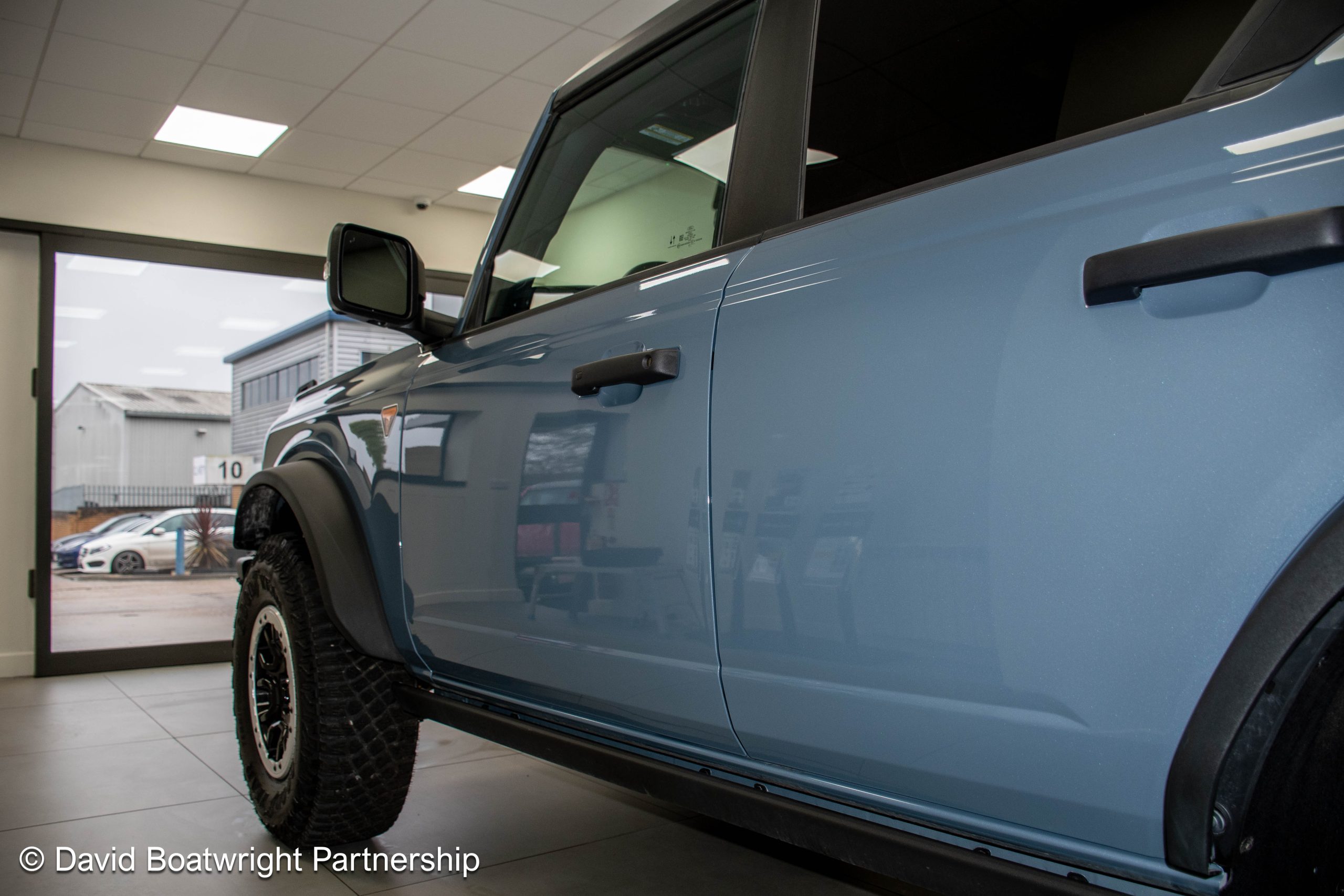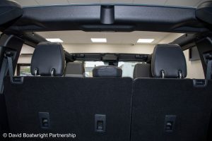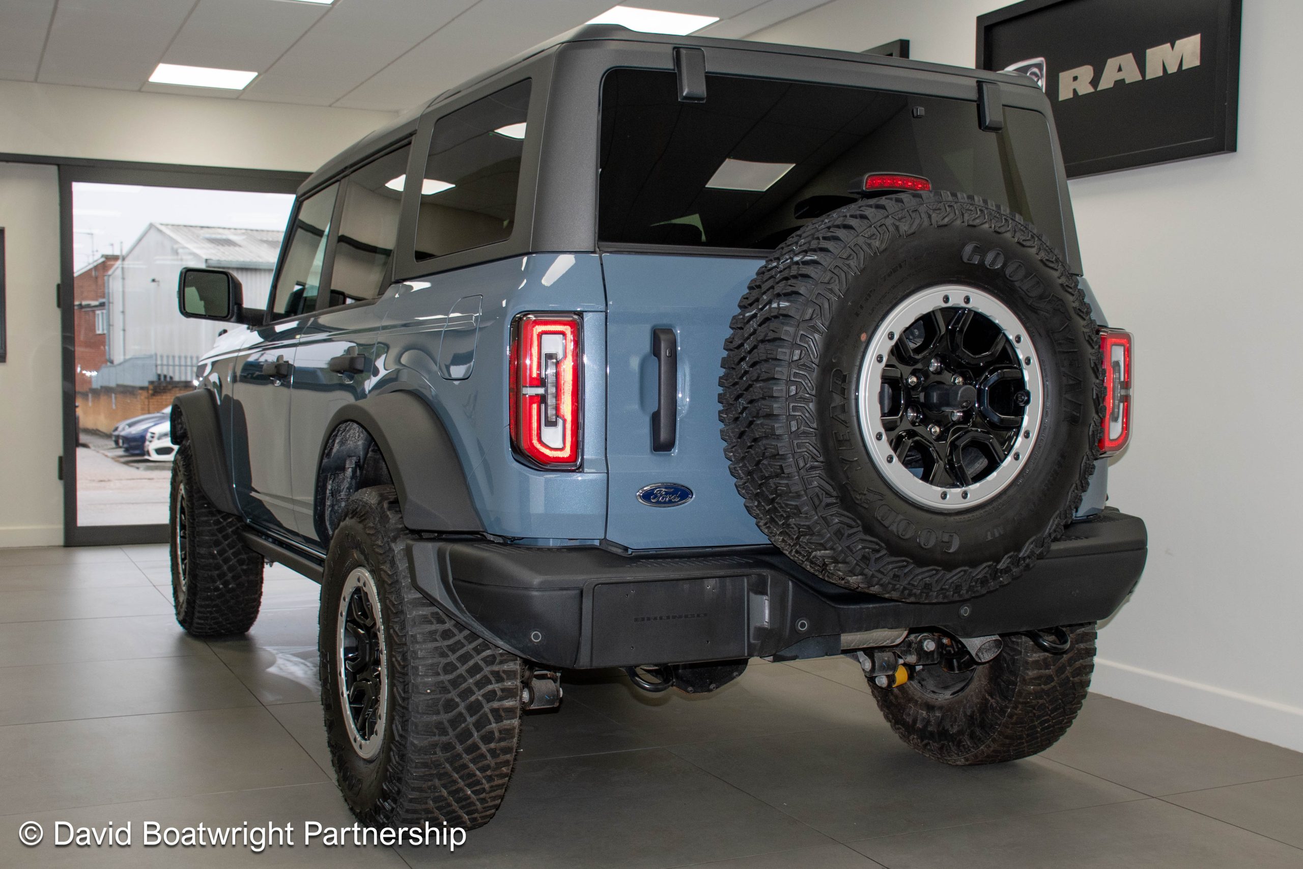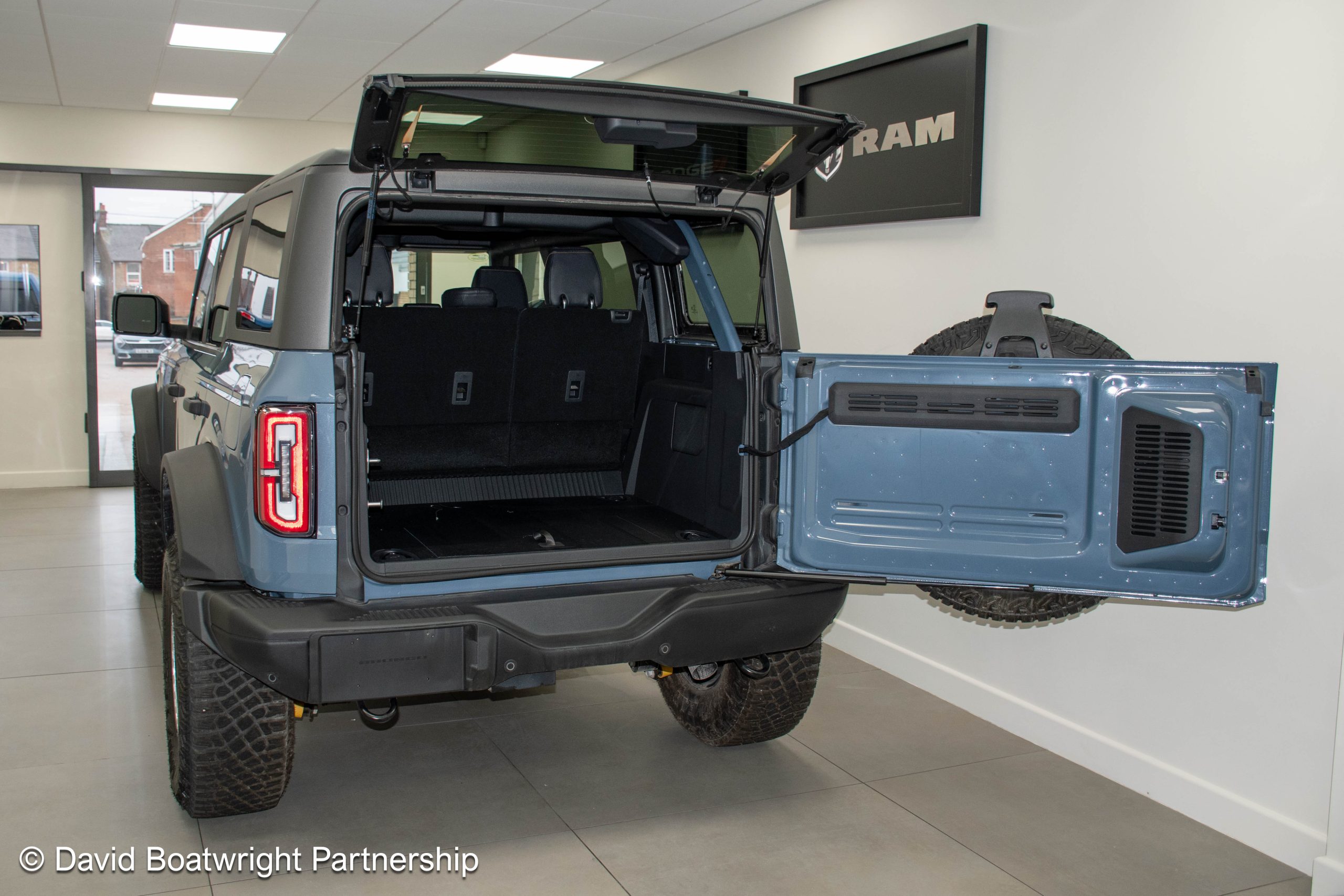 The Ford Bronco Badlands comes complete with fully removable roof and storage bags, finished in metallic Azure Grey & Black Onyx vinyl interior.