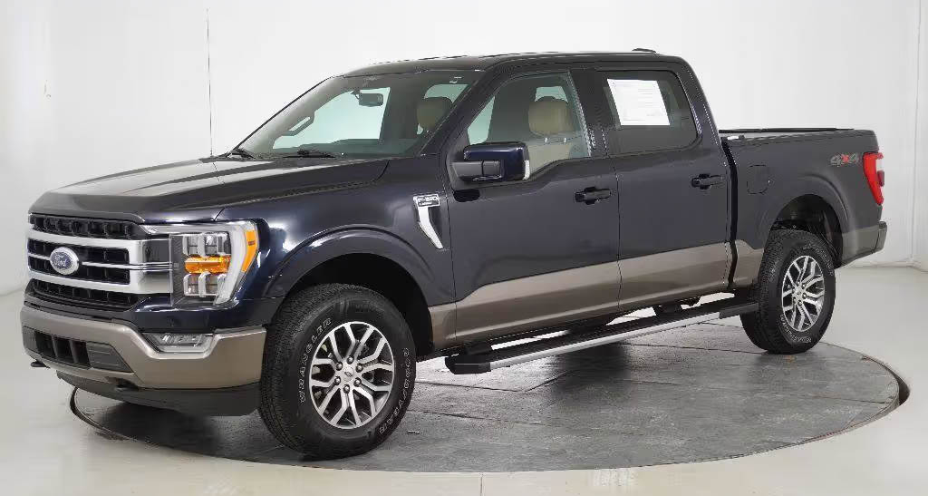 New and unregistered 2021 model Ford F150 Lariat 4x4 in Antimatter Blue/Signature Navy with delivery miles.